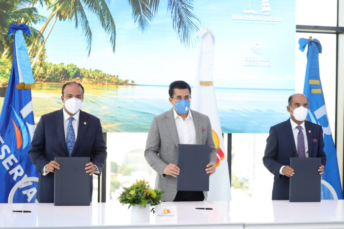 El convenio, denominado Plan de Asistencia Turismo Seguro RD, fue firmado por el ministro de Turismo, David Collado; el administrador general del Banco de Reservas, Samuel Pereyra; y Víctor Rojas, vicepresidente ejecutivo de Seguros Reservas.